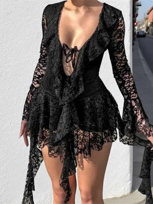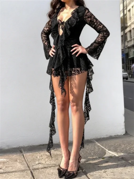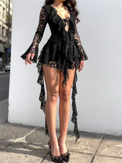 Elevate your wardrobe with our stunning Lace Ruffle Belted Dress! Made from a luxurious blend of 95% Polyester and 5% Elastane, this dress is a must-have for any fashion-forward woman. The delicate lace detailing and flirty ruffle hem add a touch of romance, while the belt cinches in your waist for a flattering silhouette. Available in classic black or chic white, this dress is perfect for any occasion.