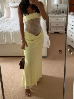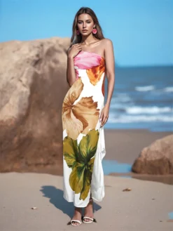 Women Summer Casual Long Dress Flower Embroidery Tie-Up Halter Neck Sleeveless Dress Fashion Backless A-line Dress