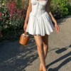 Sleeveless spaghetti strap dress, bowknot decor, contrast color, lace trim, simple and stylish.