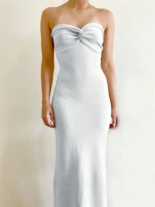 Women Y2K Knitted Long Dress Solid Color Strapless Bodycon Pencil Slit Tube Dress Summer Fall Sexy Elegant Chic Dresses Female