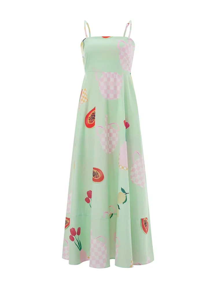 Womens Summer Long Dress Casual Floral Print Sleeveless Spaghetti Strap Beach Dress Flowy Dress
